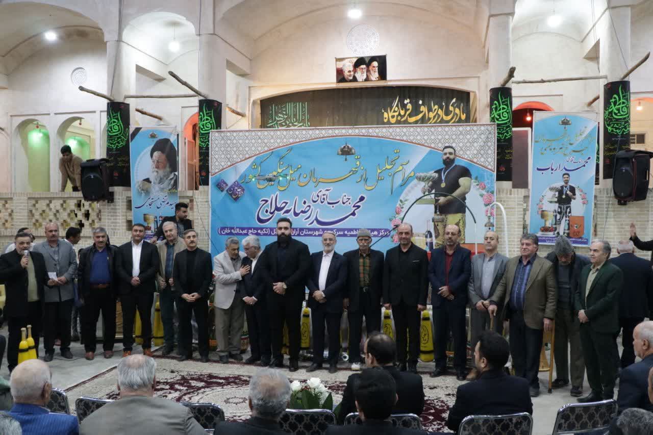 این مراسم با حضور نماینده محترم مردم در مجلس شورای اسلامی، فرماندار محترم شهرستان، ریاست اداره ورزش و اعضای شورای شهر، به پاس دستاوردهای برجسته این قهرمان ملی در عرصه ورزش میل سنگین کشور برگزار شد.