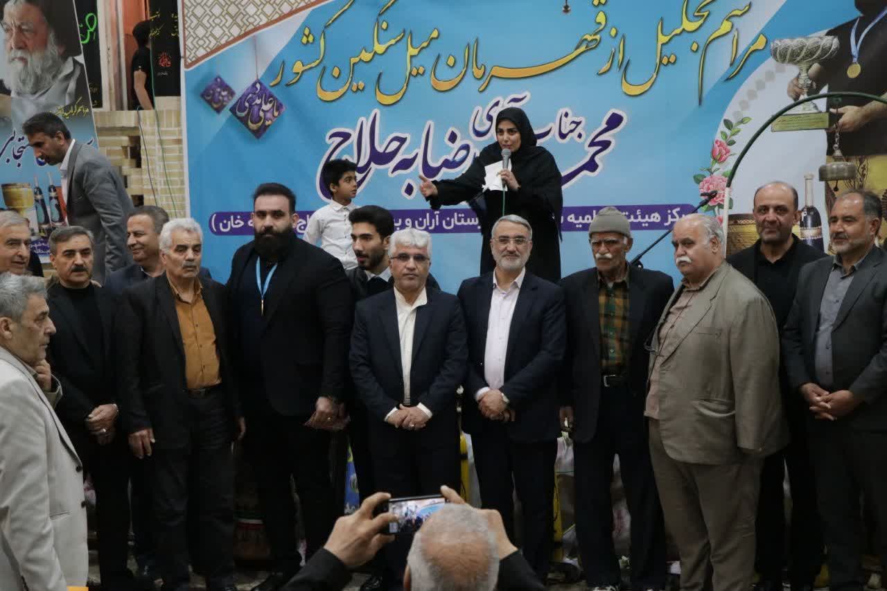 به گزارش افق نو آران و بیدگل؛ مراسم تجلیل و تقدیر از محمدرضا به حلاج، قهرمان ملی میل سنگین کشور، با حضور جمع زیادی از ورزشکاران، پیشکسوتان ورزش باستانی و مسئولان شهری در مرکز هیئت فاطمیه سرکوچه آران و بیدگل (تکیه حاج عبدالله خان) برگزار شد.