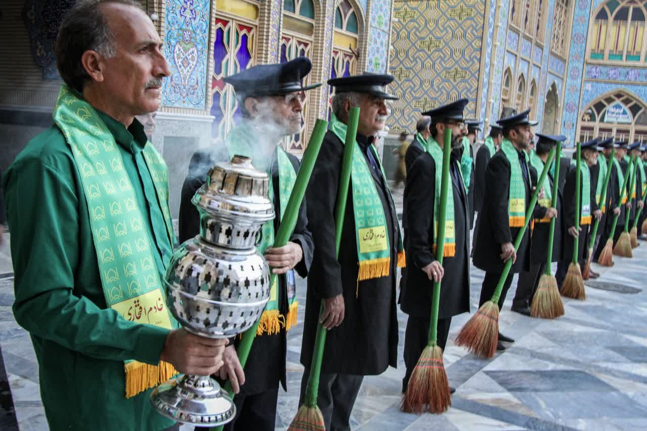مراسم جارو زنی خدام افتخاری حرم مطهر حضرت محمد هلال بن علی بن ابیطالب علیهمالسلام