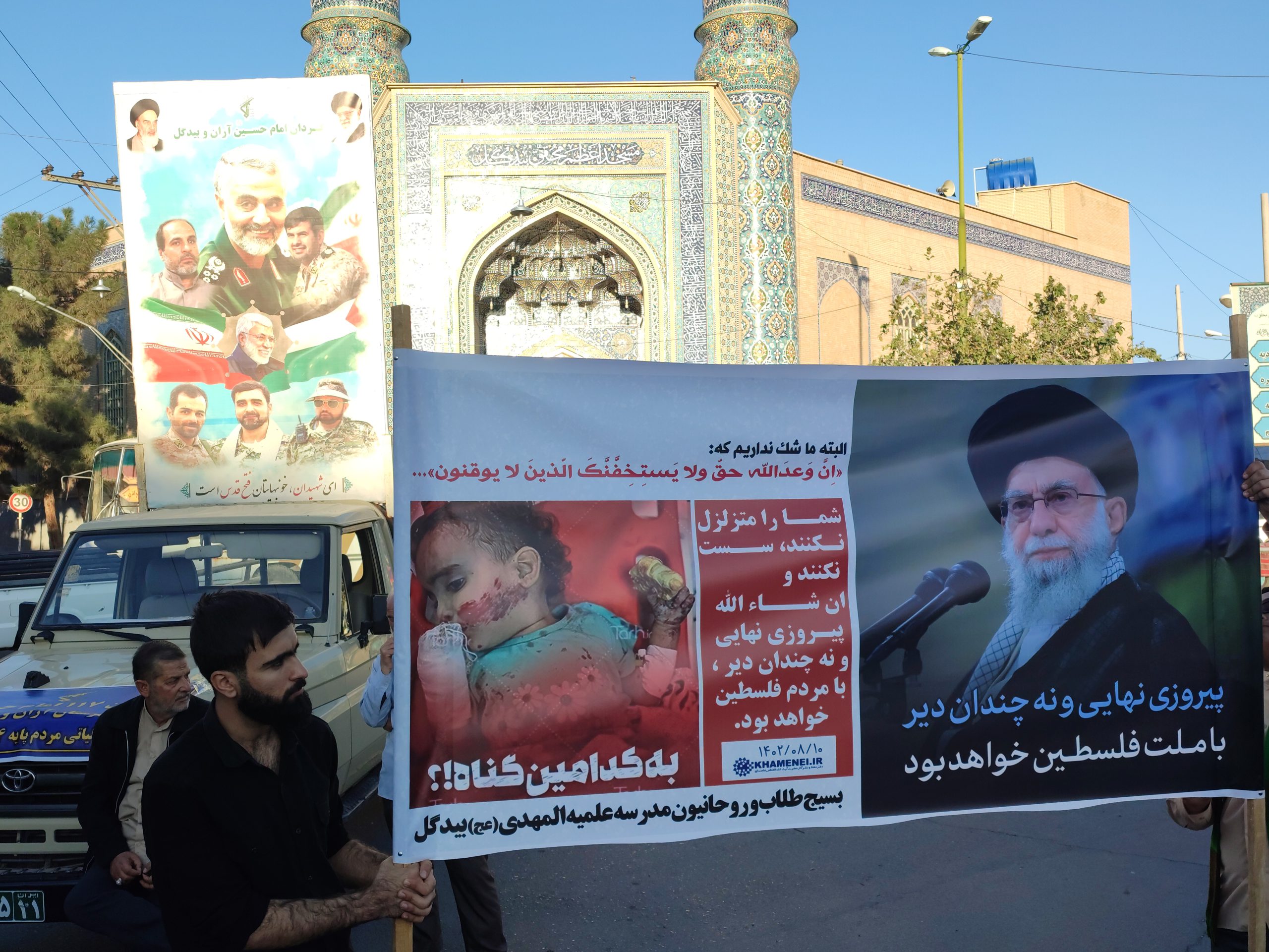 به گزارش افق نو آران و بیدگل؛حضور پرشور و دشمن شکن مردمولایتمدار شهرستان آران و بیدگل در محکومیت کشتار وحشیانه کودکان مظلوم غزه توسط رژیم منحوس صهیونیستی و اعلام حمایت جهانی از کودکان فلسطینی