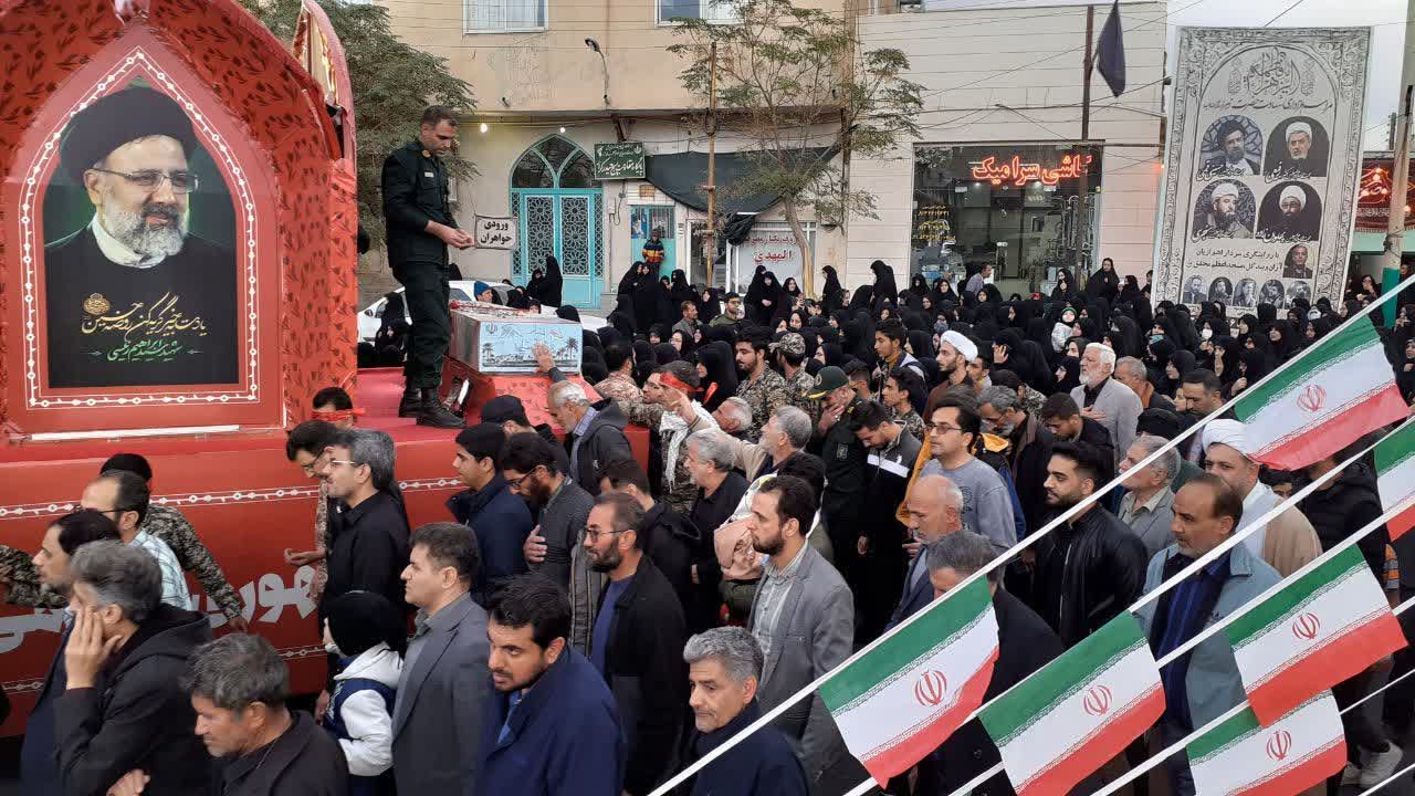 این مراسم با حضور گسترده اقشار مختلف مردم ولایتمدار، از میدان بسیج به طرف بلوار امام، میدان امام و میدان شهید سلیمانی تشییع شد.