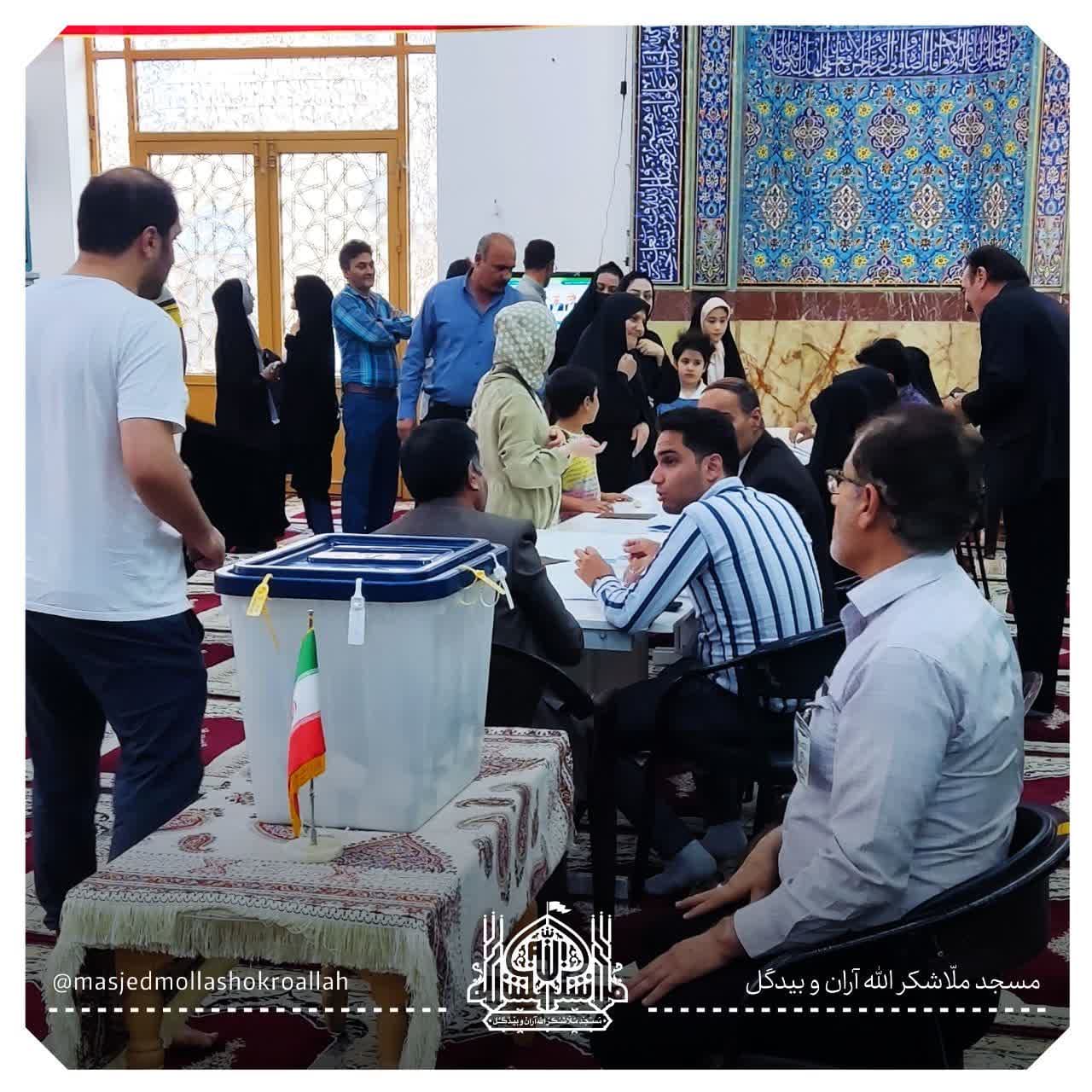 به گزارش افق نو آران و بیدگل؛ مردم ولایی و شهید پرور آران وبیدگل در راستای حمایت از نظام و انقلاب مقدس جمهوری اسلامی در چهاردهمین دوره ریاست جمهوری ایران با حضور پرشور خود پای صندوق های رای بار دیگر پایبندی خود را به این نظام و انقلاب نشان داده و با امام و رهبری تجدید میثاق کردند.