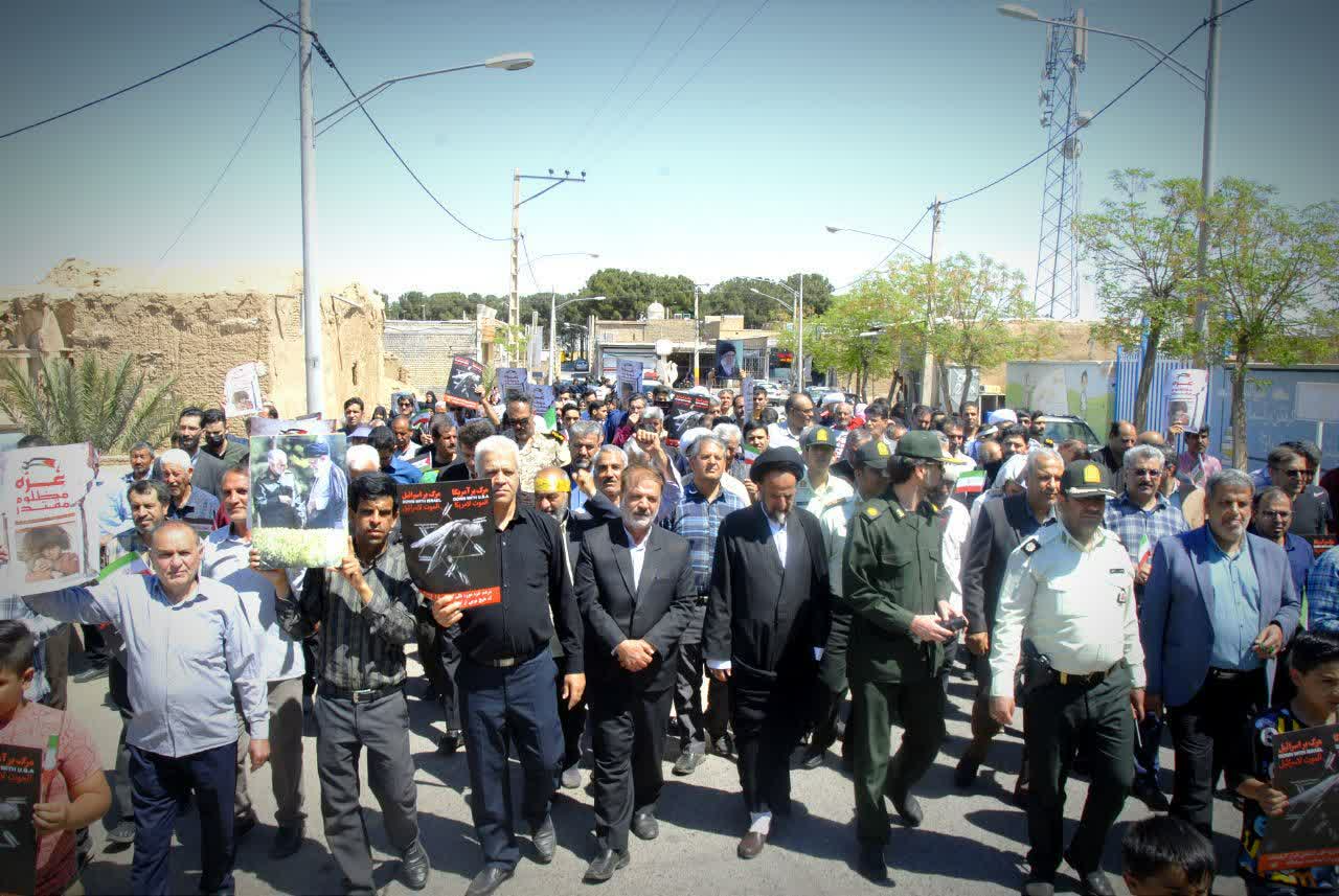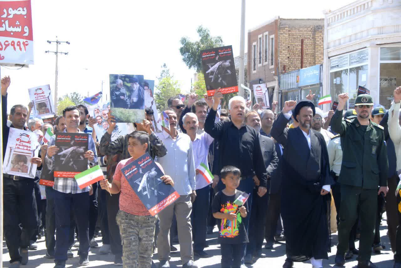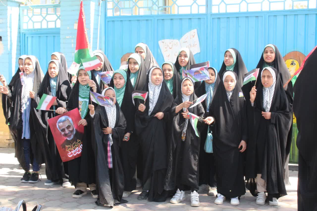 روز جمعه ۱۷ فروردین‌ماه ۱۴۰۳ مصادف با ۲۵ماه مبارک رمضان ساعت ۱۱ صبح با حضور حماسی اقشار مختلف مردم و با هدف حمایت از مردم مظلوم فلسطین و آرمان رهایی قدس شریف و ابراز انزجار از رژیم جعلی و غاصب صهیونیستی در نقاط مختلف شهرستان آران و بیدگل برگزار شد.