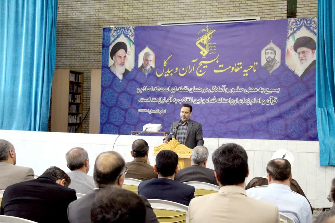 به گزارش افق نو آران و بیدگل؛؛ صبح امروز دوشنبه ۲۲ آبان، با حضور علی‌اکبر رضایی فرماندار، دادستان عمومی و انقلاب، سرپرست بازرسی کاشان، روسا و مدیران دستگاه‌های اجرایی، چهارمین جلسه شورای اداری شهرستان با محوریت گرامیداشت هفته بسیج، در حسینیه شهدای بسیج این شهرستان برگزار شد.